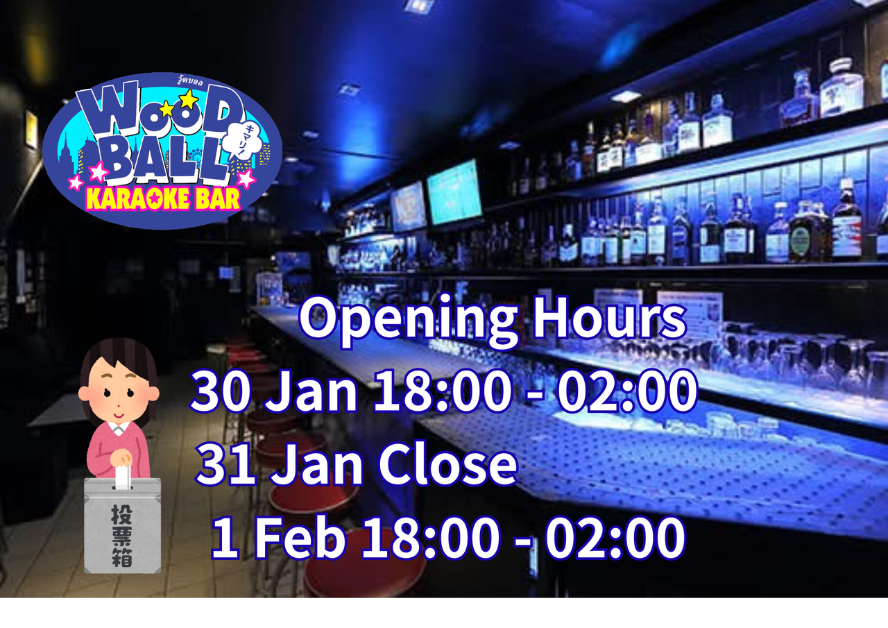 【お知らせ】1月31日(土)は、タイ総選挙の期日前投票日の前日で禁酒日のため、ウッドボール全店休業になります。