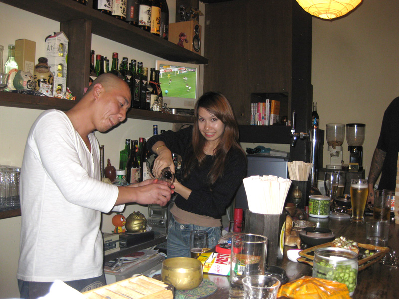 下の写真は地元金沢のたこ焼きバー遊楽寺です。こんなアットホームなお店もいいですね。左のお酒をついでるのが僕の彼女です。
