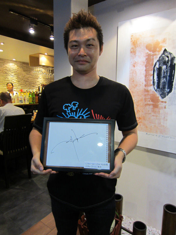 ラルクアンシエルが今回のバンコク公演の際に訪れたSOBAQさんにサインを見せてもらいました♪
