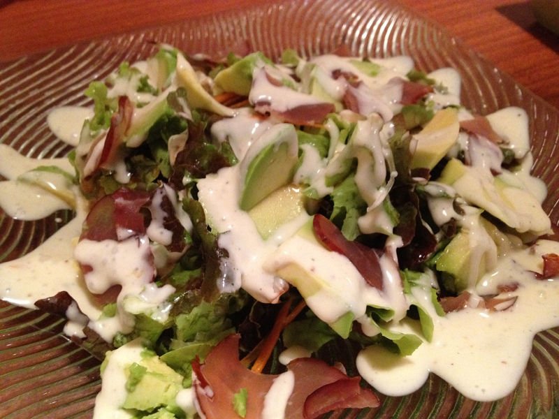 お通しにサラダ、なんでも美味しいです!さすが三宅くん!