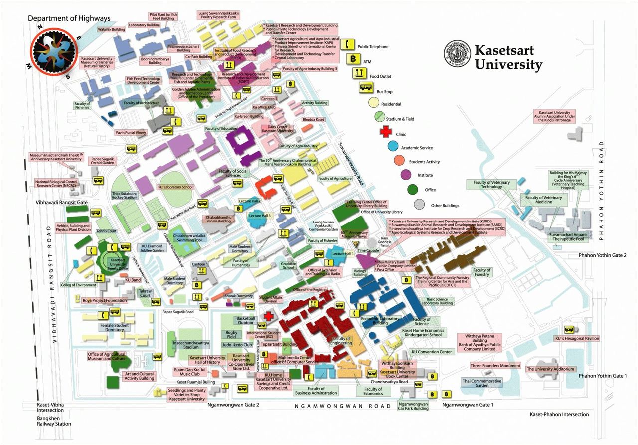 最寄駅はMRTのパホンヨーティン駅またはBTSのモーチット駅になります。駅からはバスまたはタクシーでお越しください。敷地が広いため、学内はシャトルバスやバイタク等をご利用ください。