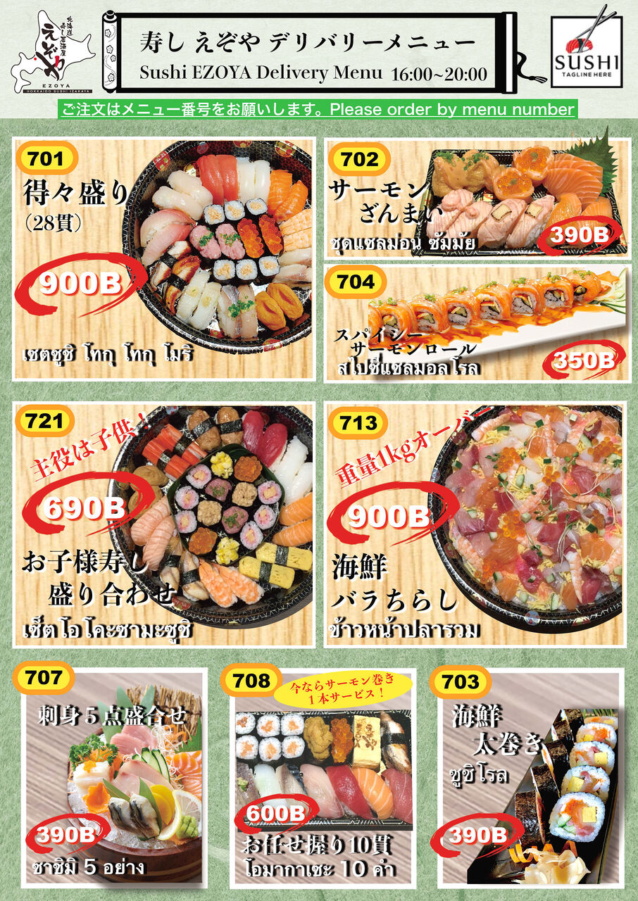 寿しえぞやのデリバリー営業時間は、16:00〜20:00になります。