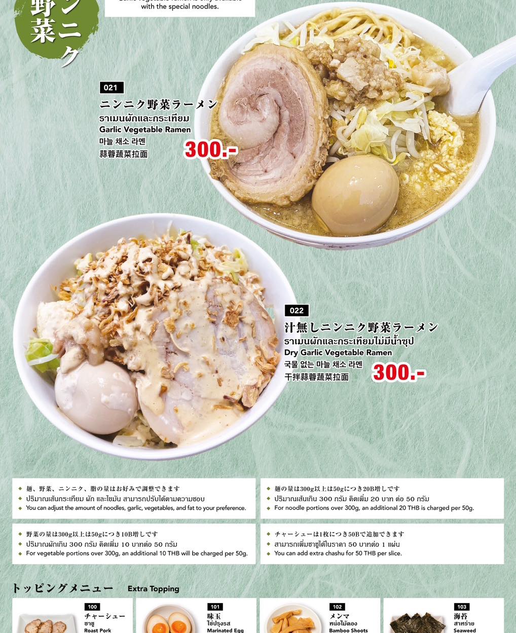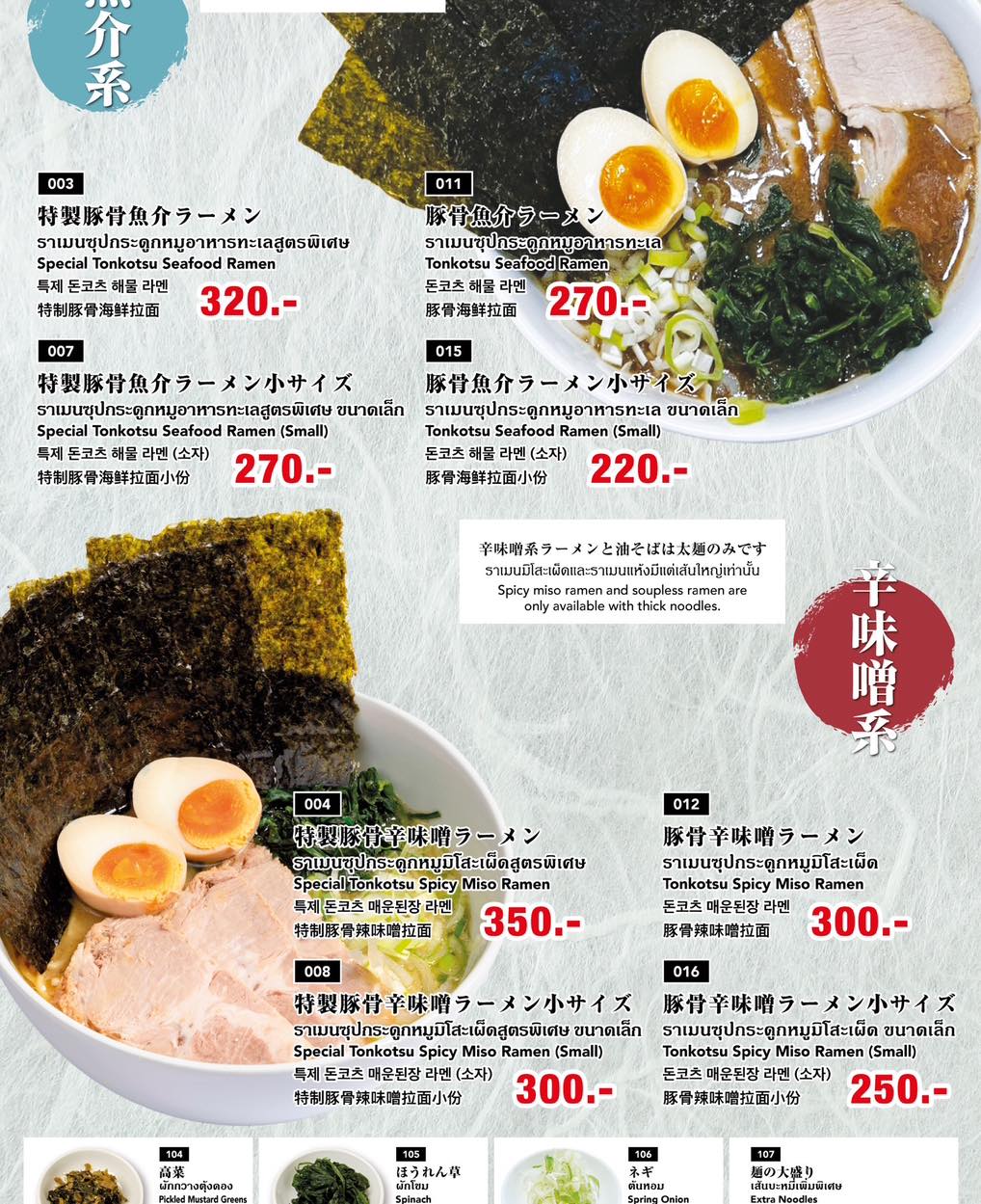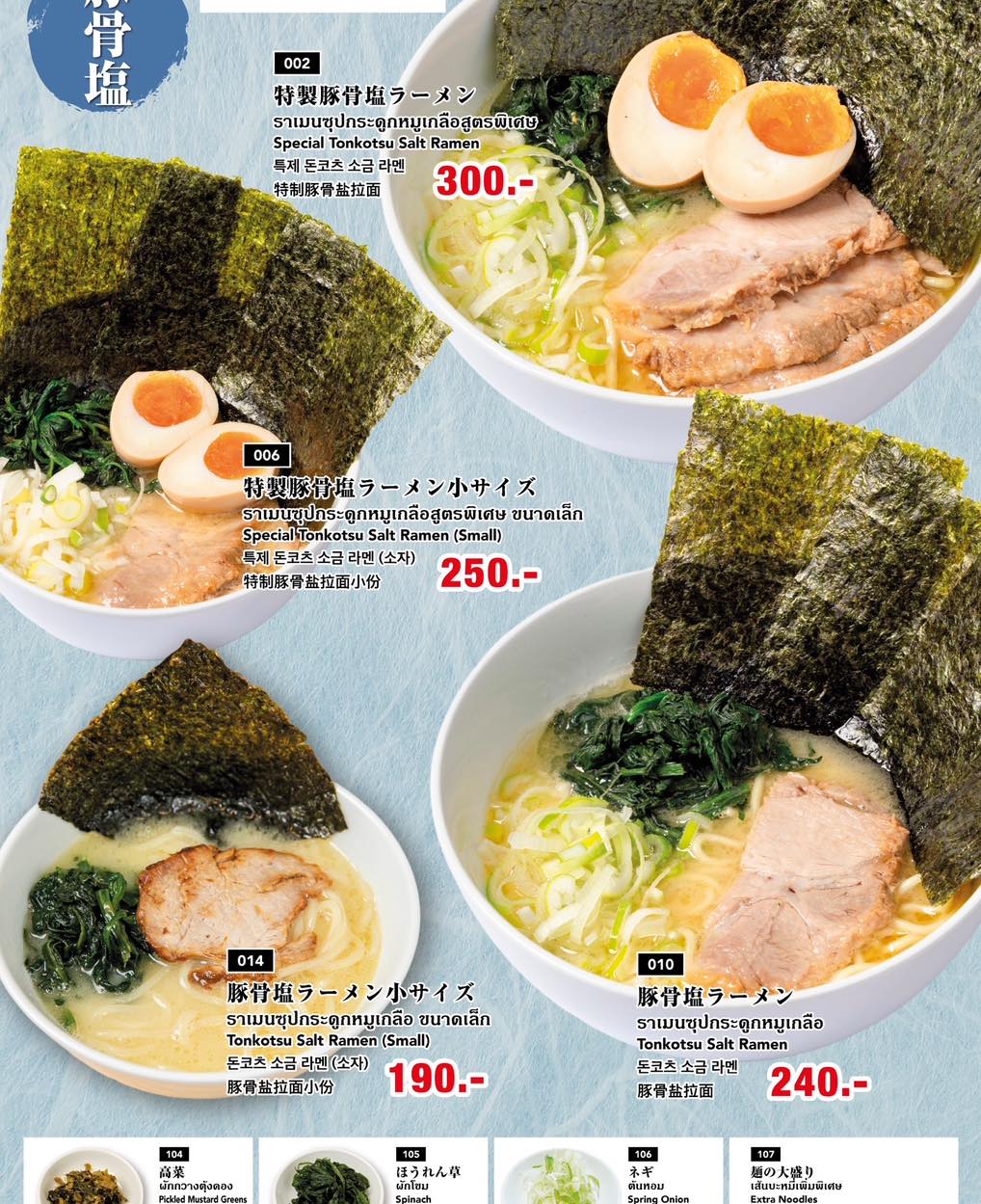 今回は、特製豚骨塩ラーメン(300B)を注文しました!細麺と太麺が選べます。僕は迷わず、太麺を注文しました。