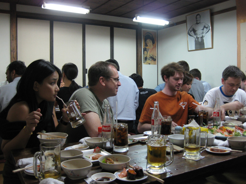 お店に入ったら、こういう集まりにはよくあることで、知り合いが何人かいました。みんな好きだなぁ。
