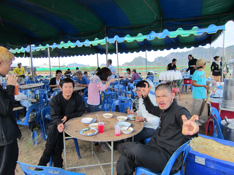 撮影当日は朝3時半にラチャダにあるCM制作スタジオを出発し、車で3時間かけてペッブリまで行きました。