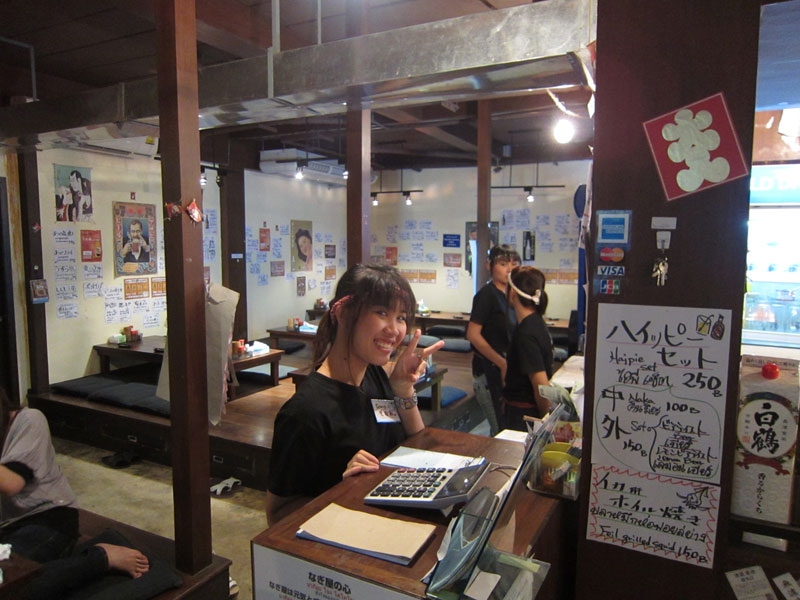 店内はそのまんま日本の居酒屋さんって感じです。このごちゃごちゃ感が逆に落ち着いて好きな空間です。スタッフも日本の居酒屋さんのように威勢がいいです。