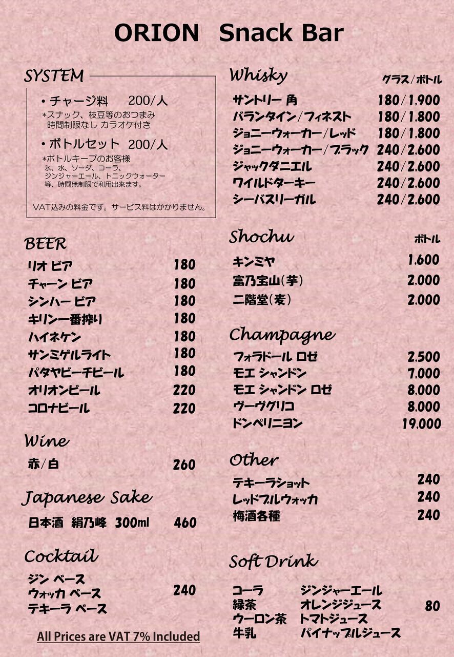 オリオンスナックバーのメニューを紹介します☆