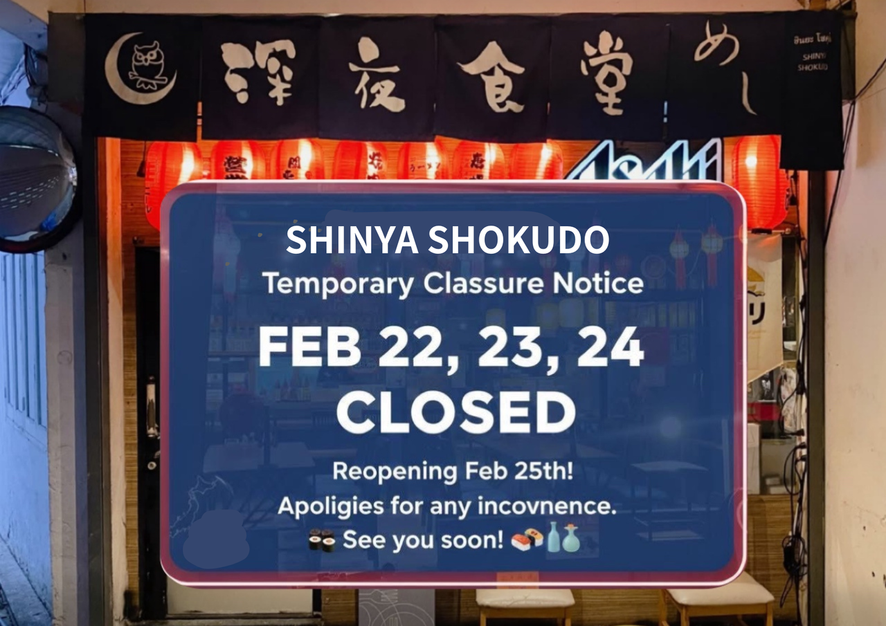 【お知らせ】2月22〜24日は働き方改革のため、深夜食堂バンコク店はお休みになります。