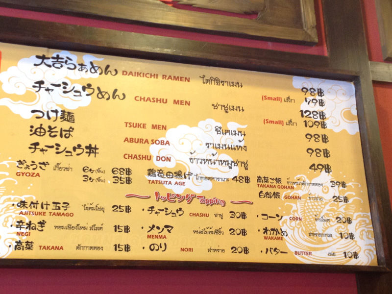 あと驚いたのが、値段がすごく安いことです!上記の大吉ラーメンが98B、高菜ご飯は39Bです!サービス料やTAXは掛かりません。