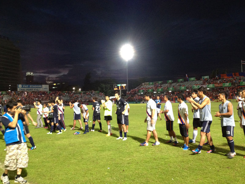 ブリラムユナイテッドの応援団のみなさん、すごいテンポのいい応援です。本田選手によると、この応援でほんとにモチベーションが上がって、助かってるとのことです。