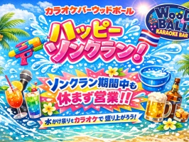 【ハッピーソンクラン】ウッドボール各店、オリオンスナックバー、おでん青葉、深夜食堂は、ソンクラン期間中も休まず営業いたします☆